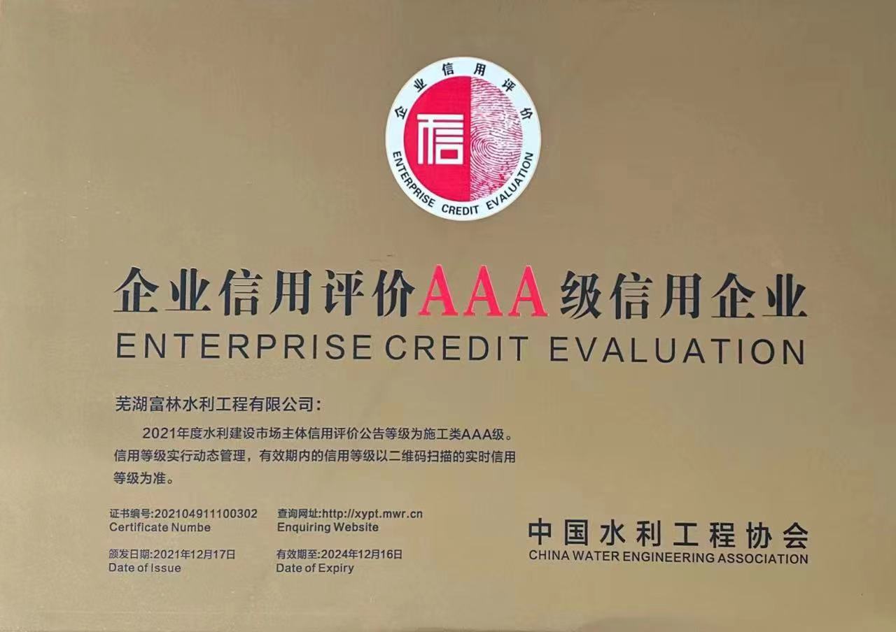 2021年度水利建设市场主体信用评价施工类AAA级