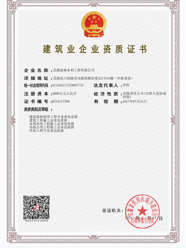 2024年1月23日,公司再获资质大提升,市政公用工程施工总承包贰级资质下证。