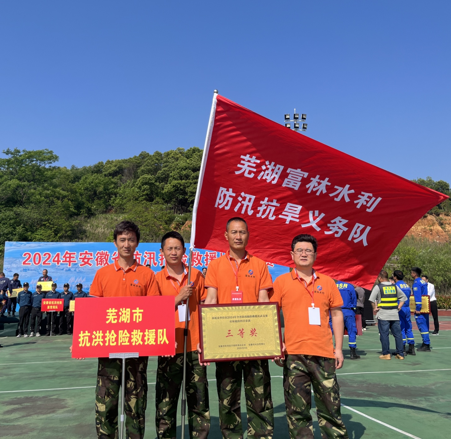 2024年5月8日至5月10日,由安徽省防汛抗旱指挥部办公室、安徽省应急管理厅主办的安徽省首届防汛抢险救援比武竞赛在安徽省自然灾害救援基地和巢湖湖畔举行,来自全省22支专业队伍齐聚巢湖,公司共派出四名富林水利防汛应急抢险义务队队员代表芜湖市参加本次比武竞赛,最终赢得堤防打桩抢险科目全省三等奖。