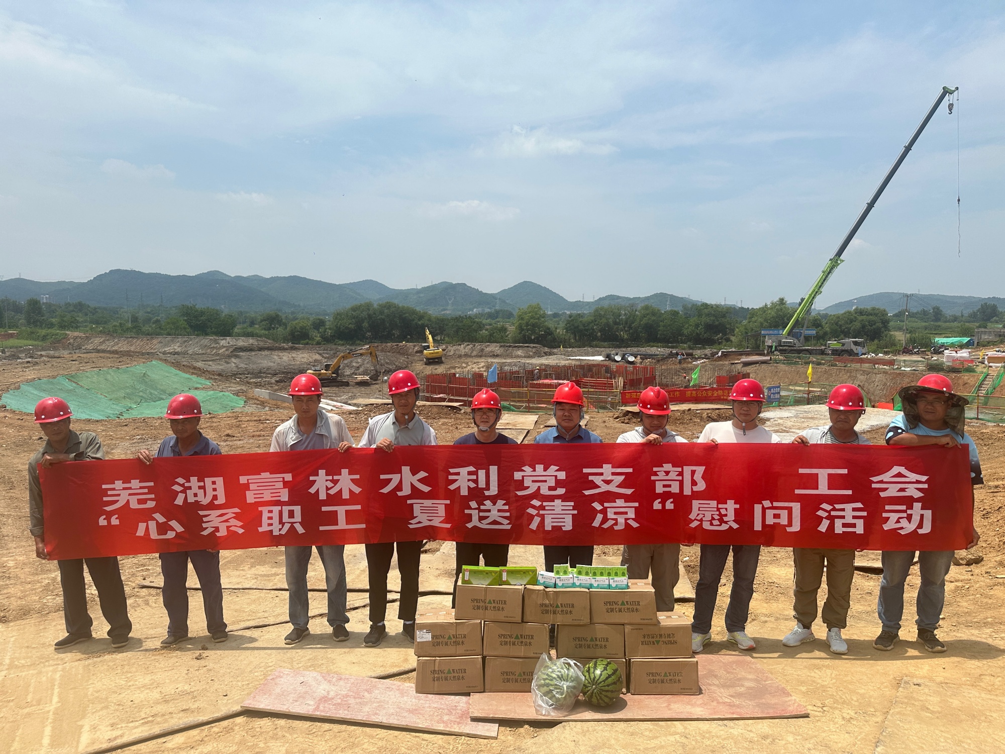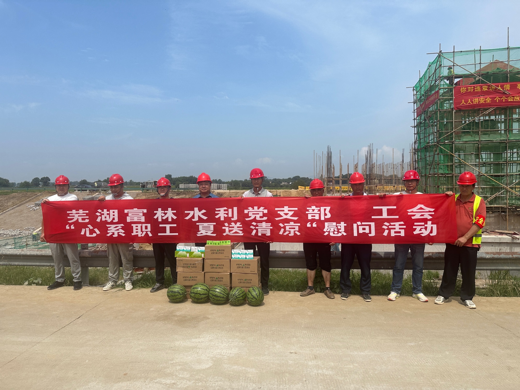 炎炎夏日,骄阳似火。公司党支部、工会,始终心系一线职工,为做好高温天气职工关爱工作,切实维护一线职工的健康权益,2024年6月13日,公司党支部书记、工会主席、副总经理杨建品以及副总经理盛青峰、人力资源部部长芮龙、工程部部长陶绍升等一行赴各在建工地组织开展“心系职工、夏送清凉”慰问活动,向高温期间仍坚守岗位的一线人员送去夏日的一声问候、一缕清凉。