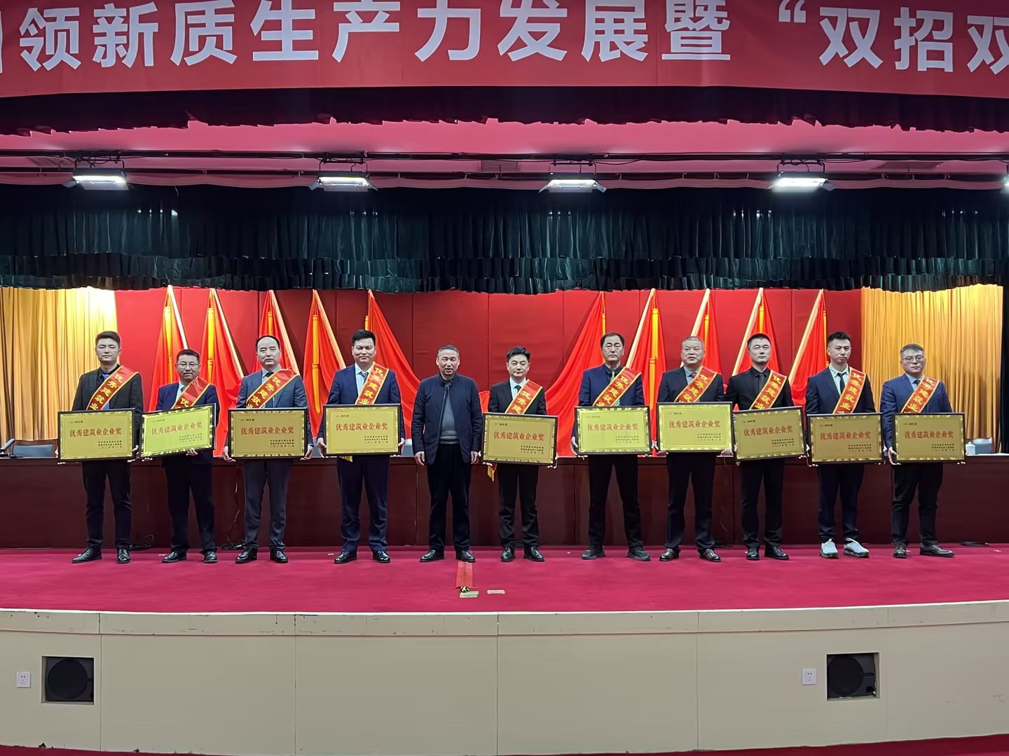 会上,公司荣获2024年度优秀建筑业企业奖,李伟总经理亲自上台领奖。