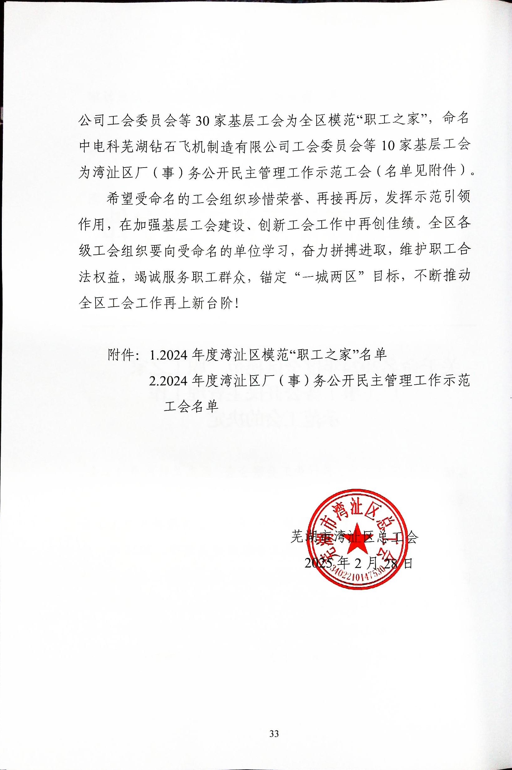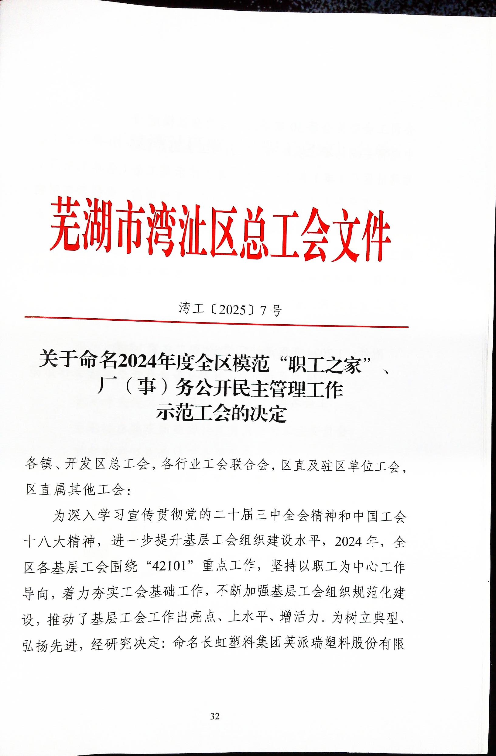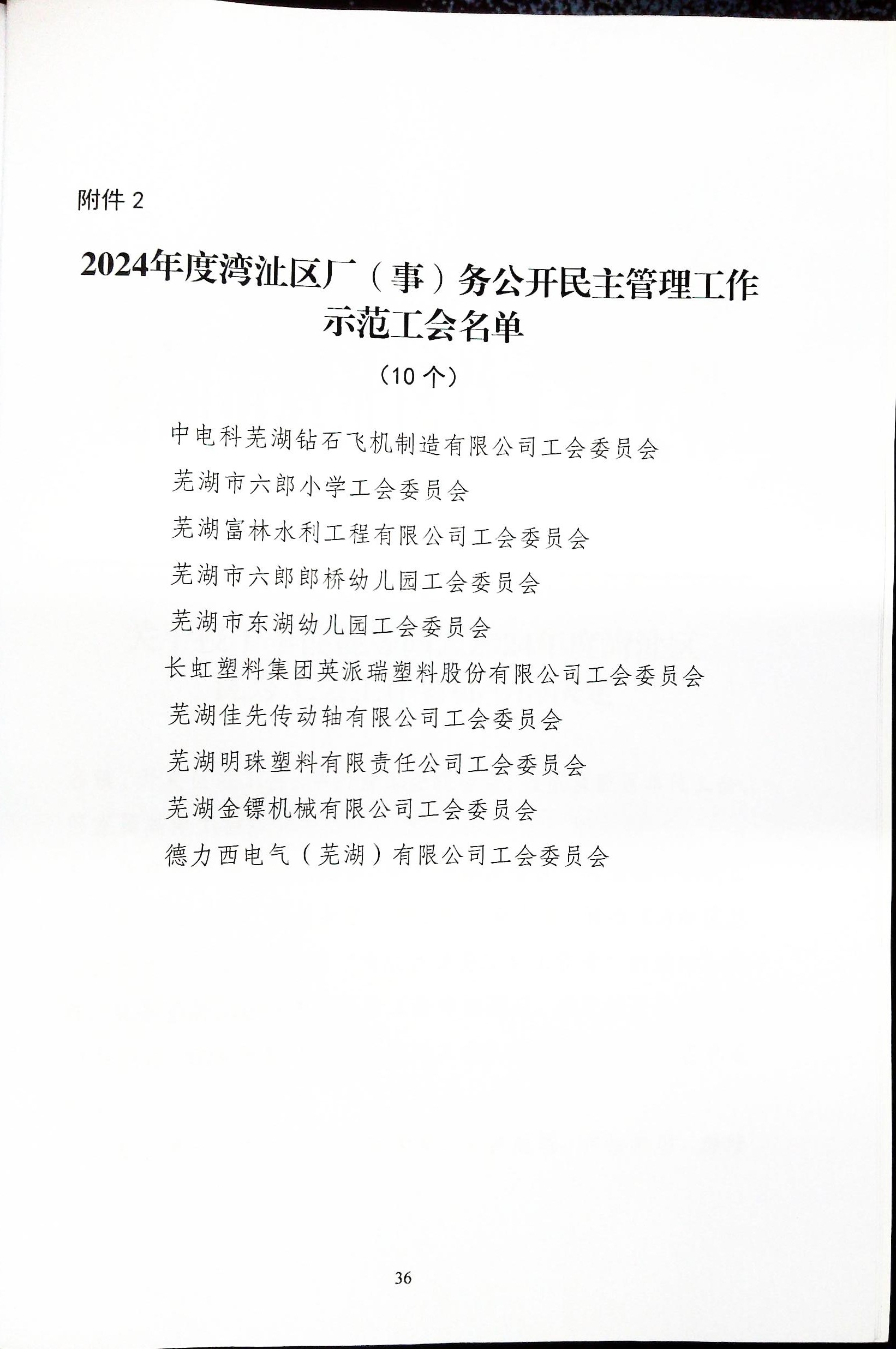 公司工会荣获2024年度湾沚区厂(事)务公开民主管理工作示范工会称号