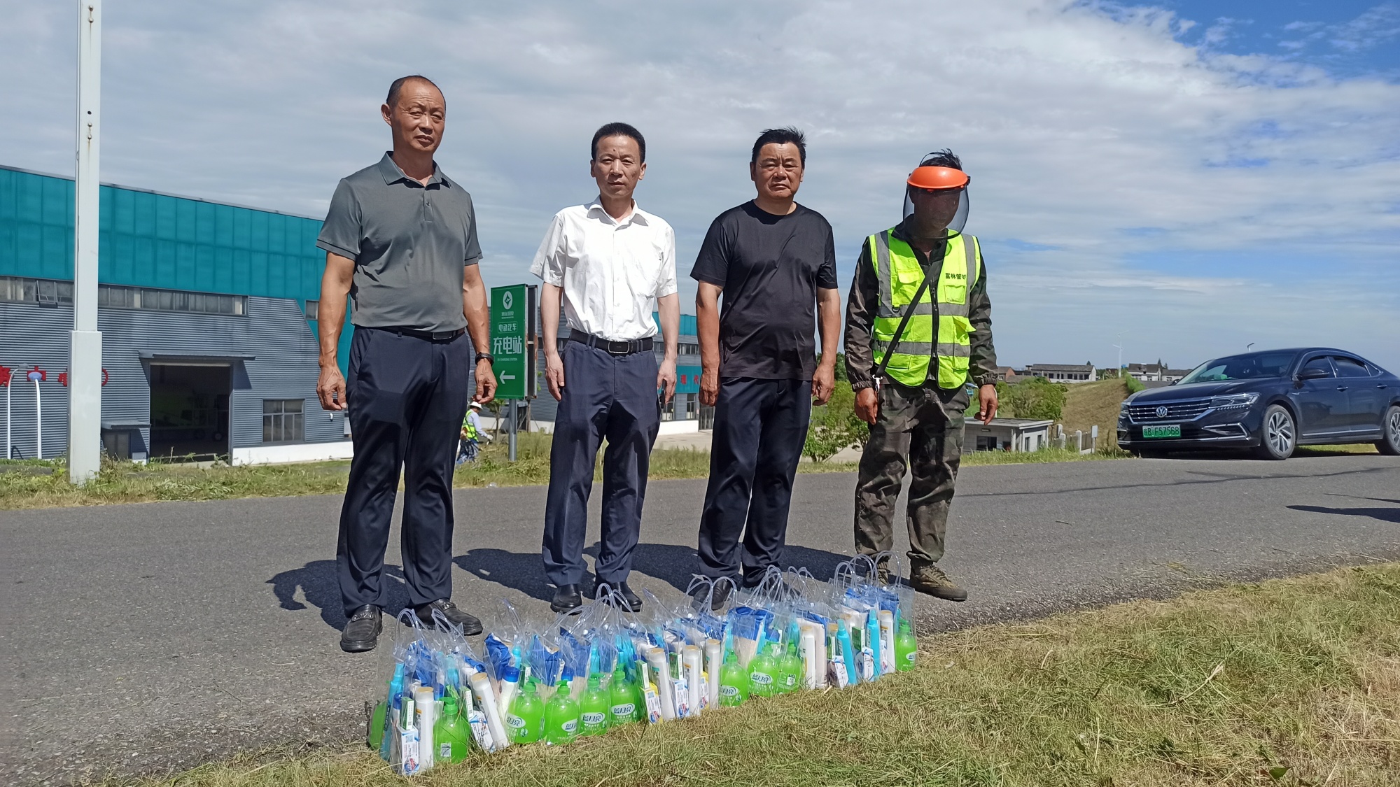 2025年7月23日上午,烈日当空,六郎镇总工会后主席带队前往我公司承揽的十三连圩堤防清障管护项目(咸保段)作业现场慰问奋战在高温一线的作业人员,将满载关怀的物资送到一线人员手中,以实际行动为坚守岗位的劳动者送去清凉,彰显工会组织对我公司广大职工的贴心关怀。