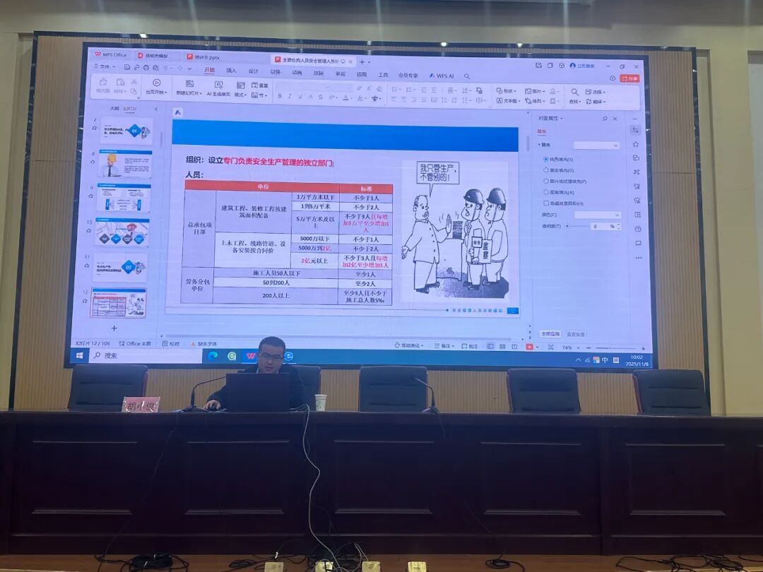 此次培训聚焦行业实际需求,旨在提升从业者专业能力与风险防范水平,为湾沚区建筑业高质量发展赋能。主办方邀请了业主知名专家胡小俊老师和后小伟老师,以 “安全负责人与管理人员培训” 、“施工企业挂靠转包分包风险与防范”为核心,结合典型案例深入解析建筑业安全生产隐患风险排查与建筑市场行为规范,助力提升湾沚区建筑企业安全生产管理能力,规范企业市场行为,合法合规安全经营。