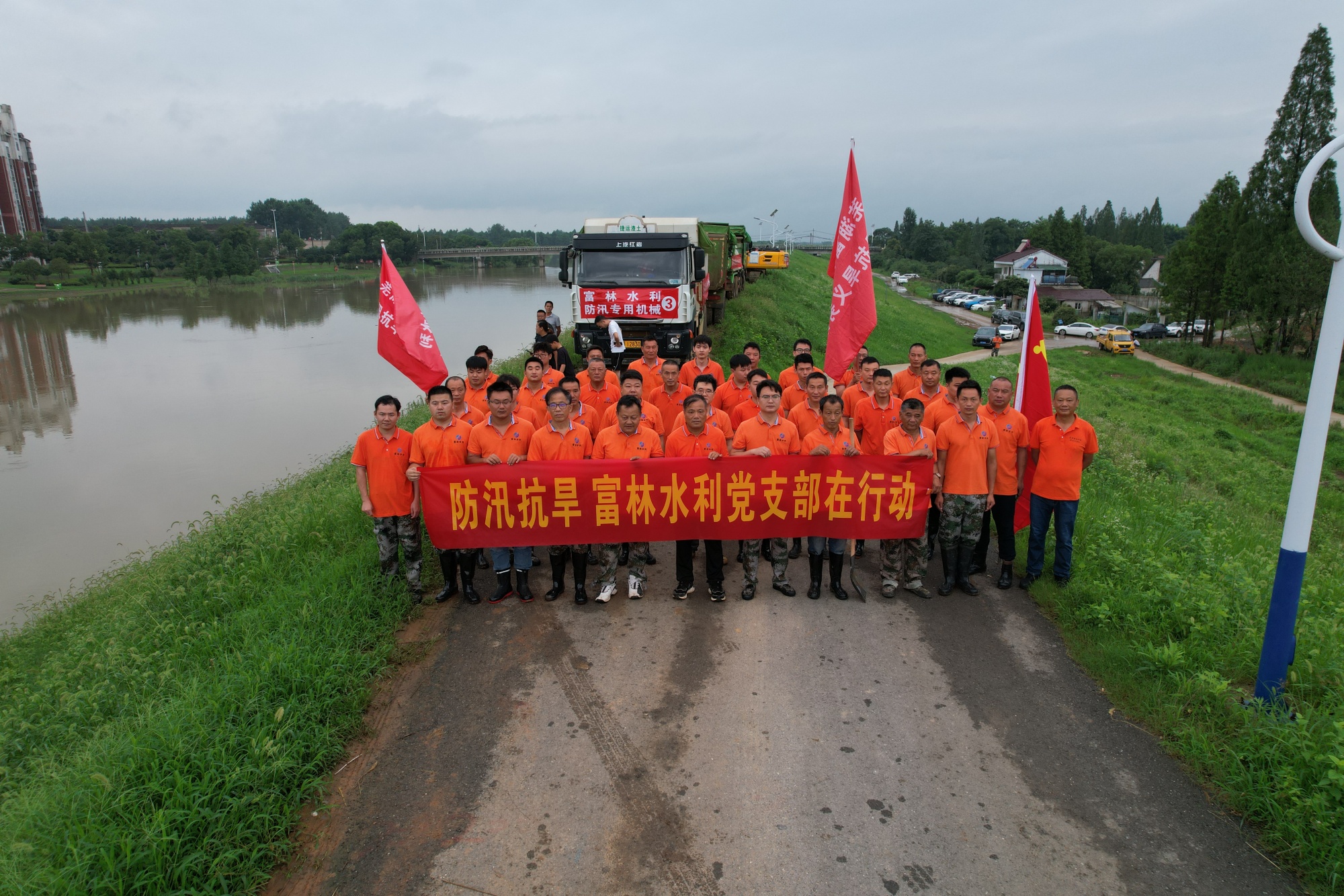 公司组织全体党员和防汛义务队员集中上堤巡埂